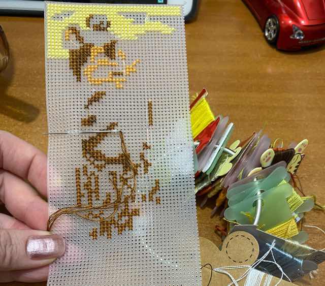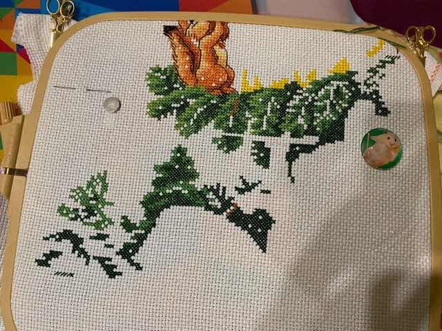 Я закончила новогоднее панно!Таня продолжает вышивать будущий мячик